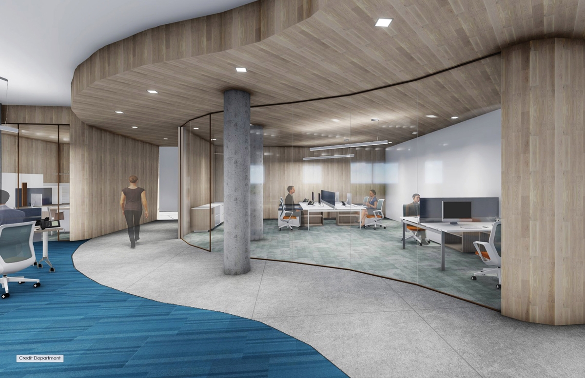 Into the Woods references OFS Brands ties to nature, which is brought into the office with a natural color palette and sustainable materials. Taking inspiration from how flora and fauna grow and persevere, Into the Woods offers areas for problem solving or personal reflection. Private nooks can be used for conversations or project work, and the collaborative corner can be utilized by any department to meet for brainstorming.-